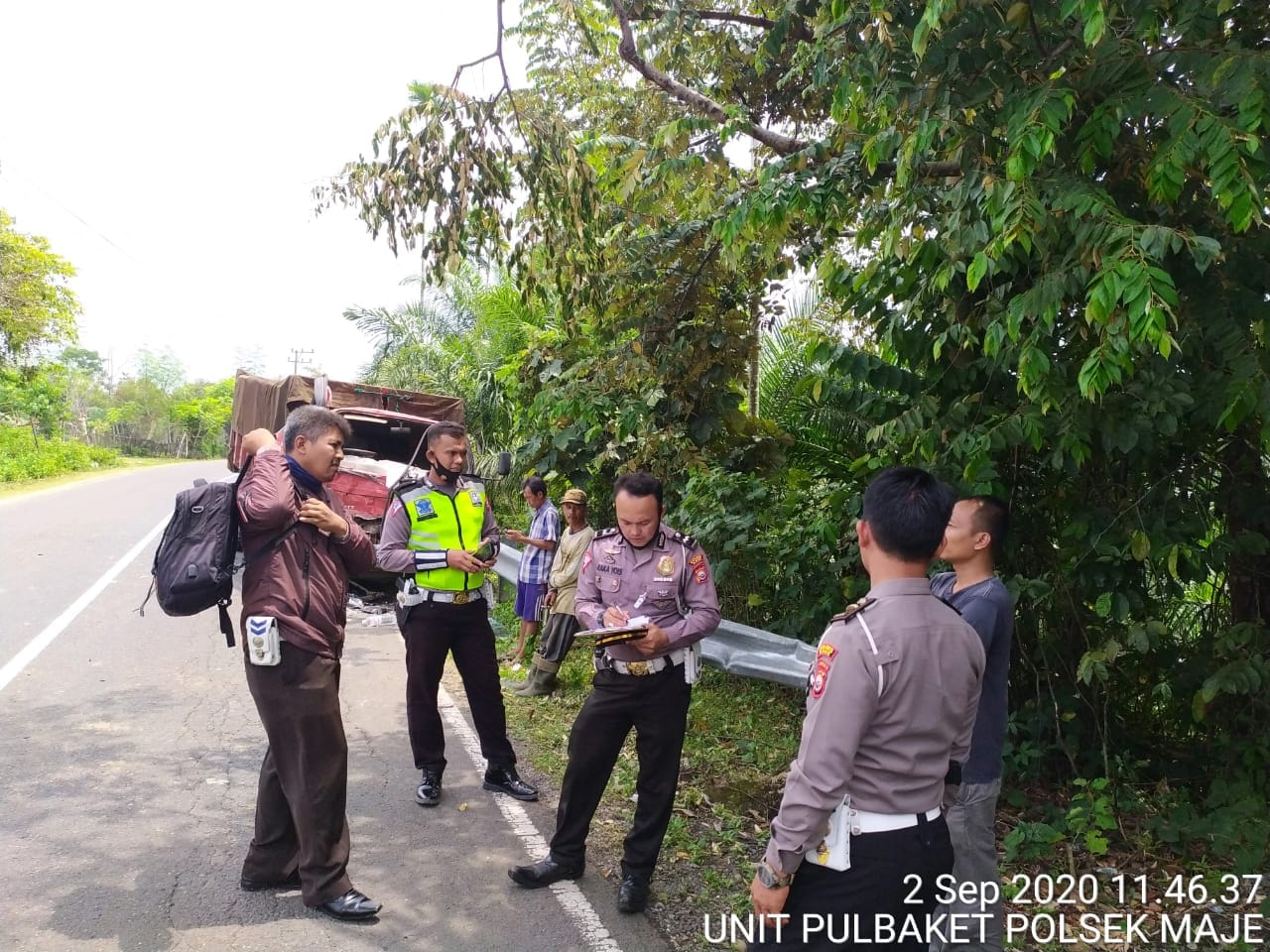 Sesampainya di kedataran tepatnya di depan tambak udang DPP Desa Linau Kecamatan Maje Sopir mengantuk dan hilang kendali sehingga menabrak mobil Dump Truck yang di kendarai Yuhadi yang datang dari arah Bengkulu menuju ke arah Lampung. untuk yang mengalami kecelakaan sudah di bawa ke Rumah Sakit Cahya Batin.