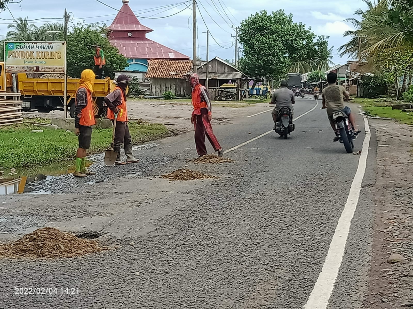 Karena aspal masih belum tersedia sehingga kita lakukan penanganan darurat dengan menimbun memakai coran koral dan semen. Riko juga mengatakan, ” bahwa untuk tambal sulam nantinya sudah beberapa titik jalan sudah di tandai dengan garis putih berarti akan di kupas dan di aspal dengan sistem tambal sulam dengan Aspal .