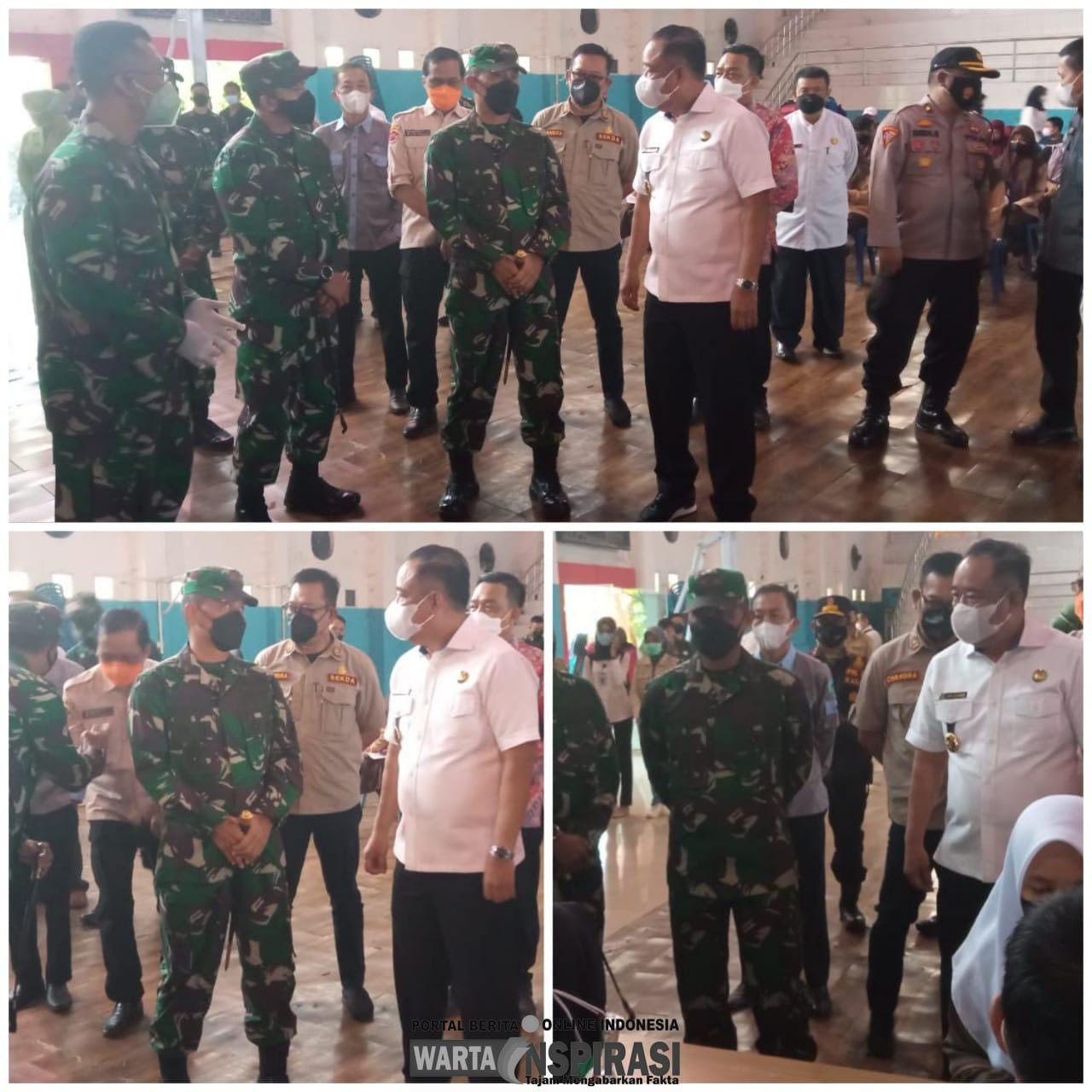 LAHAT, WARTAINSPIRASI.COM – Bupati Lahat Cik Ujang SH bersama Danrem 044 Gapo Brigjen TNI Mohamad Naudi Nurdika dan Dandim 0405 Lahat Letkol Kav Shawaf Al Amien SE M,Si meninjau langsung kegiatan “Serbuan Vaksinasi Kodim 0405 Lahat” yang dipusatkan di Gedung Olah Raga (GOR) Bukit Tunjuk.
