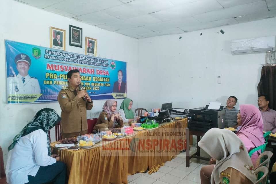 Wartainspirasi.com – Desa Dusun Baru II Kecamatan Karang Tinggi Kabupaten Bengkulu Tengah mengadakan musyawarah pra pelaksanaan dan penentuan titik nol kegiatan fisik tahun anggaran 2025.
