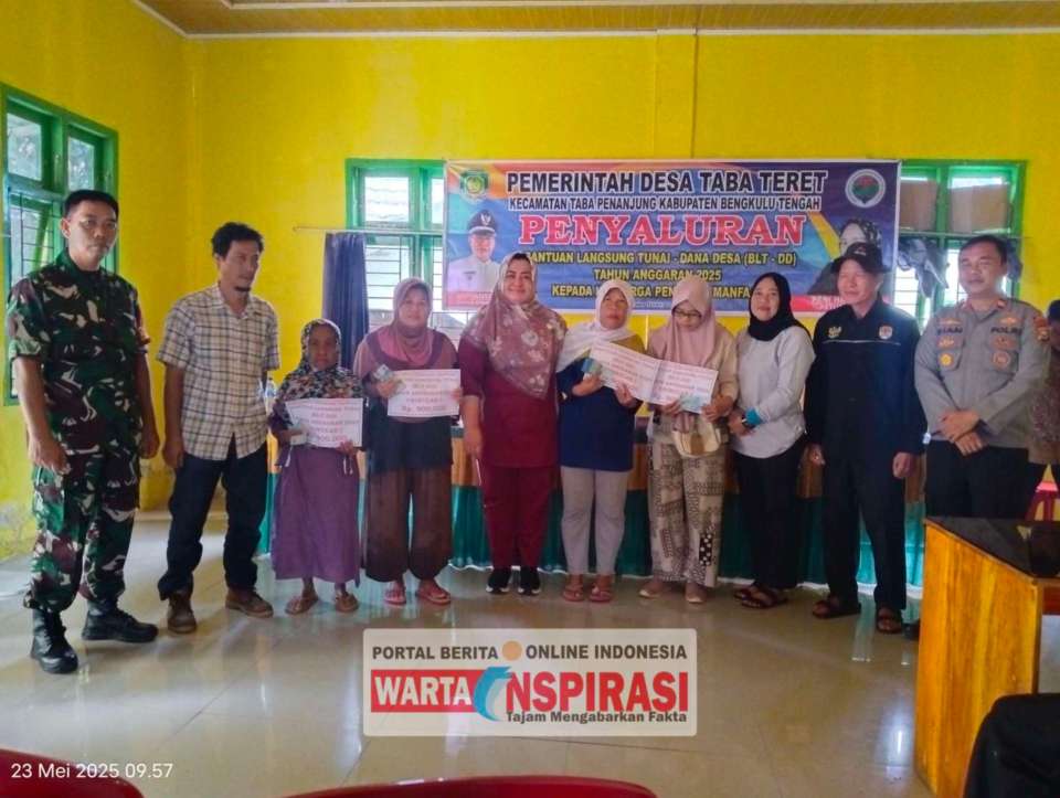 Wartainspirasi.com – Pemerintah Desa Taba Teret, Kecamatan Taba Penanjung, Kabupaten Bengkulu Tengah, menyalurkan Bantuan Langsung Tunai Dana Desa (BLT DD) Tahun Anggaran 2025 pada Jumat, 23 Mei 2025.