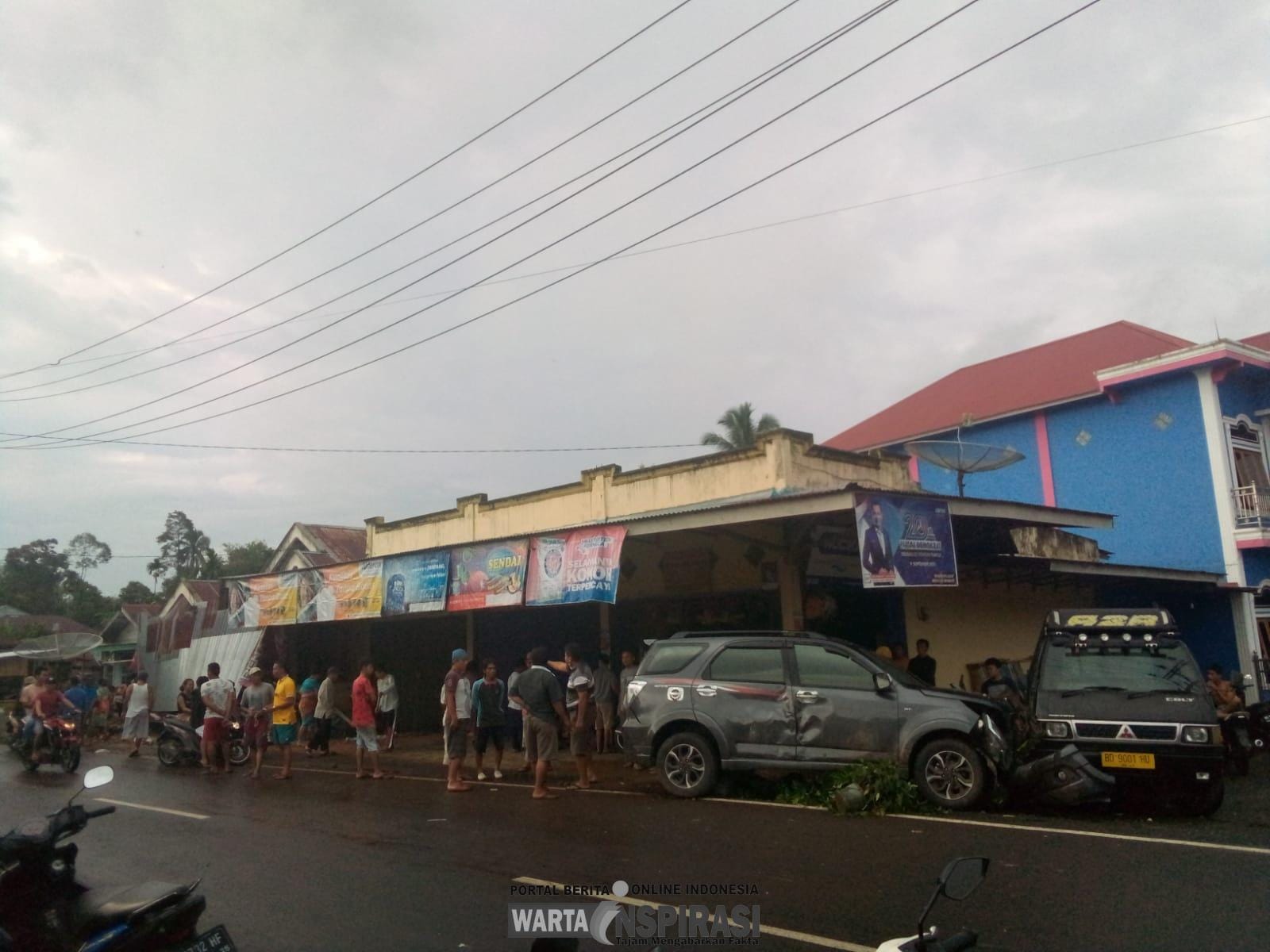 Namun tiba-tiba mobil toyota Rush tersebut hilang kendali dan menabrak tiga rumah sekaligus beserta 1 unit mobil Mitsubishi L300 BD 9001 HU yang sedang terparkir.