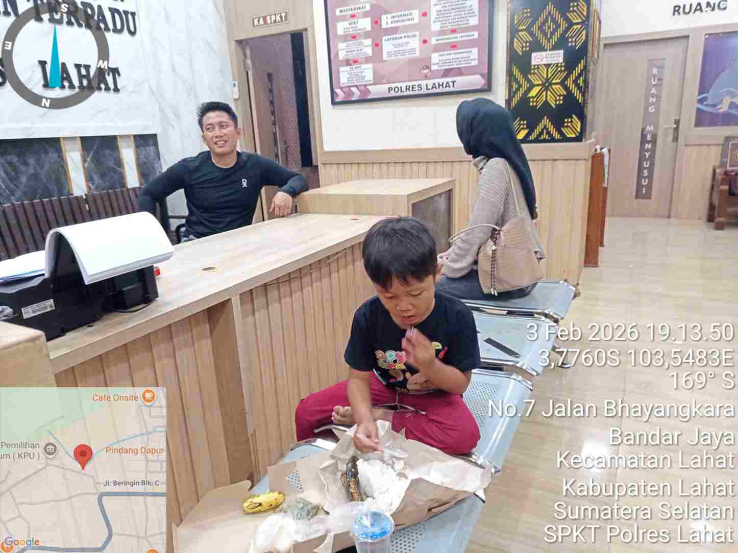 “Benar, tadi setelah Mag’rib kita melihat anak laki-laki ini dibawah Jembatan Benteng Lahat, dengan linangan air mata (menangis mencari orang tuanya),” ujar Kapolres Lahat AKBP Novi Edyanto SIK, MIK, melalui Kasat Sabara AKP disampaikan anggota SPKT Polres Lahat AIPTU Mirja, pada Selasa (3/2/2026).