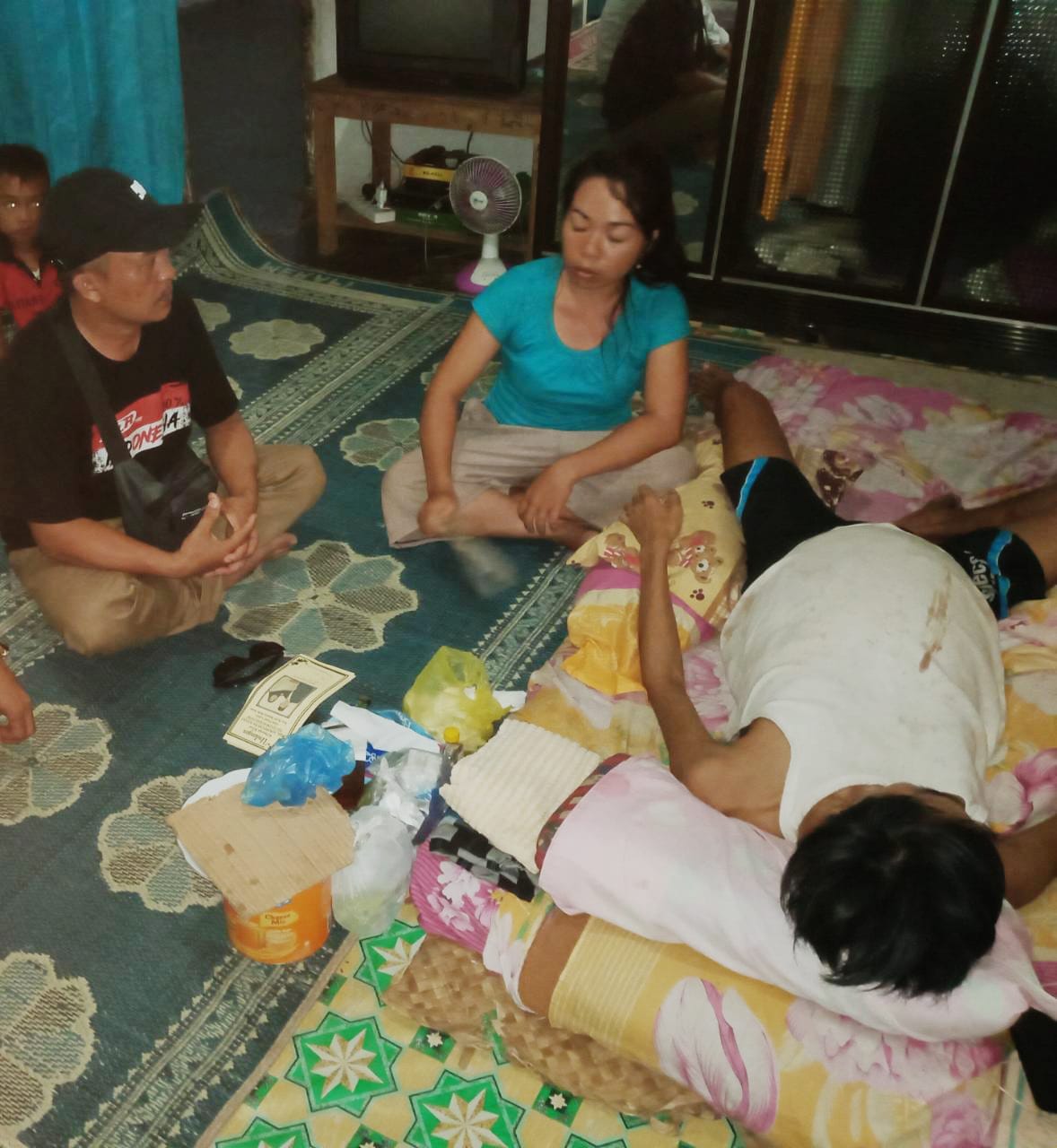 Dia terbaring di tempat tidur dengan kondisi kesakitan yang terus menerus sehingga membuat keluarganya terasa susah dan sedih karena Elja Efrianto selalu di jaga oleh sang istrinya dengan meneteskan air mata ketika datangnya kesakitan yang di rasa oleh sang suaminya ini.