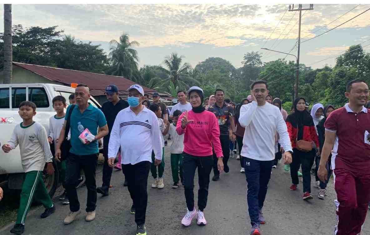 Terlihat dilapangan, Bupati Lahat Bursah Zarnubi bersama istri, dan Wabup Lahat Widia Ningsih bersama suami hadir dan berjalan bersama masyarakat.