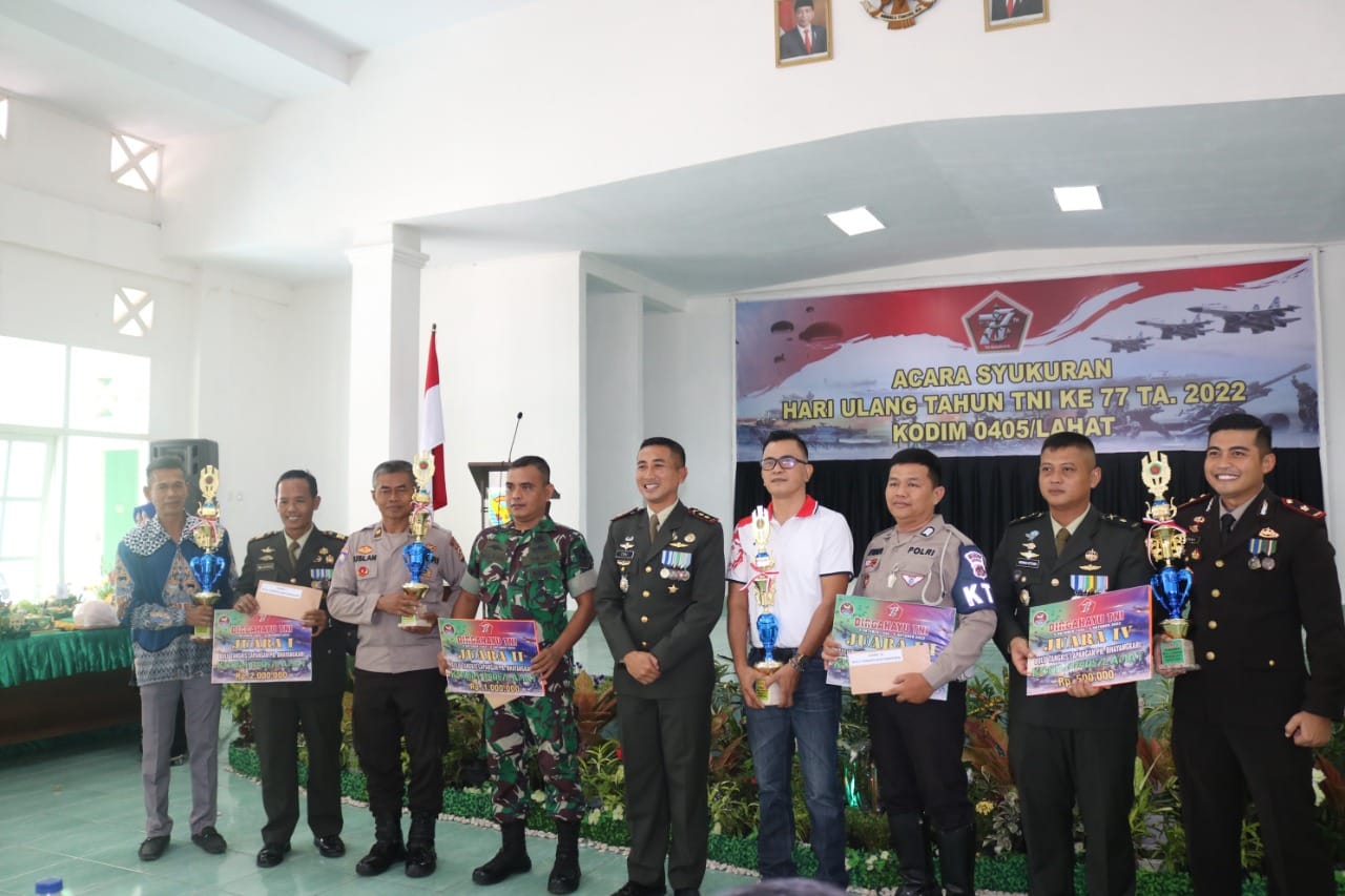 “Sekali lagi atas nama Polres Lahat dan jajaran mengucapkan selamat kepada semua jajaran TNI di HUT TNI ke-77, mudah-mudahan TNI selalu dicintai masyarakat, semakin solid untuk mempertahankan NKRI dan semakin baik. TNI Adalah Kita,” ujar Kapolres Lahat.