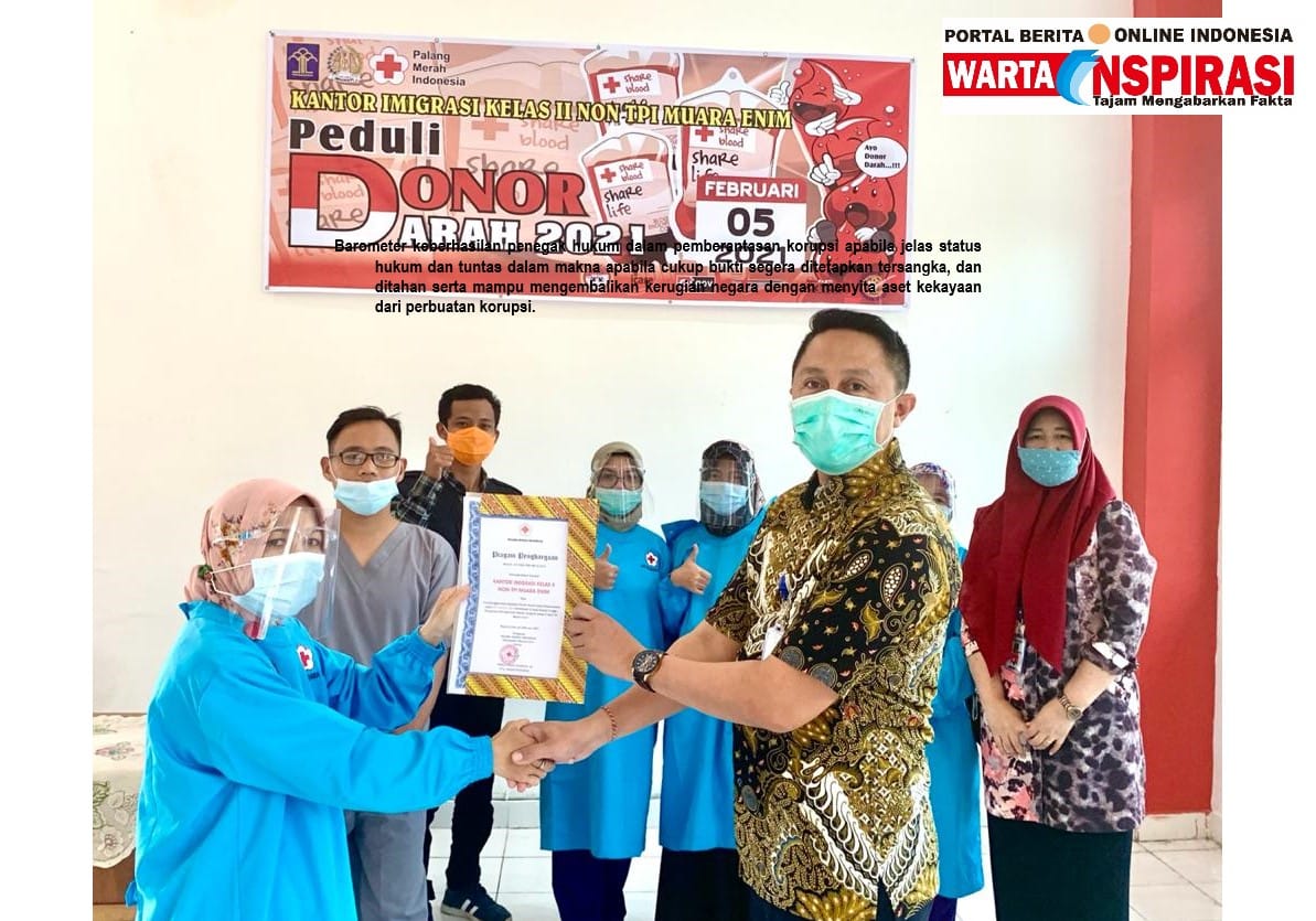 WARTAINSPIRASI.COM, MUARA ENIM — Dalam rangka menjaga ketersediaan stok darah di Palang Merah Indonesia (PMI) Muara Enim masa Pandemi COVID-19, Kantor Imigrasi Kelas ll Non TPI Muara Enim bekerjasama dengan PMI Muara Enim laksanakan donor darah kepada seluruh pegawai kantor Imigrasi Muara Enim. Jumat, (5/2/2021).