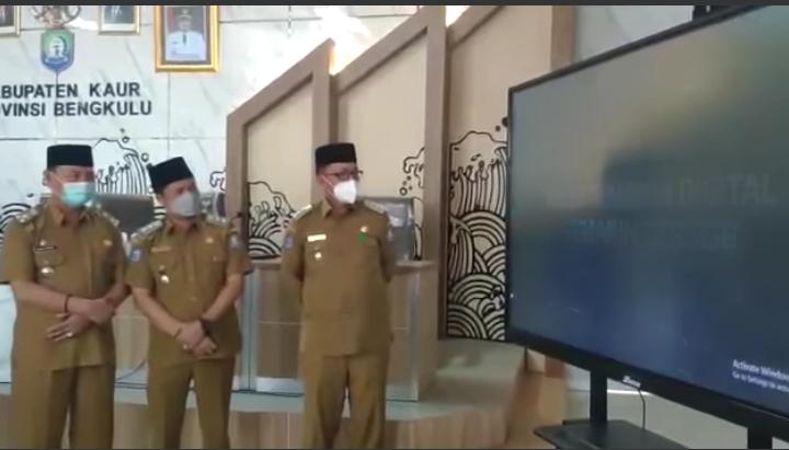 MoU dengan Telkom dilaksankan di ruang Aula Bupati Kaur, dihadiri langsung oleh Bupati Kaur H. Lismidianto, S.H, M.H didamping Wakil Bupati Kaur Herlian Muchrim, S.T, Sekretaris Daerah Dr. Drs. Ersan Syahfiri, M.M, Kepala Dinas Kominfo M. Jarnawi, S.PD, M. PD dan General Manager Telkom Bengkulu Heribertus Handoko, serta ikut hadir sejumlah kepala OPD, Kabid, Camat dan staf di lingkungan Pemda Kaur.