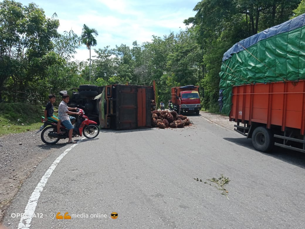 Kapolres Kaur AKBP Dwi Agung Setyono S IK MH melalui Kapolsek Kaur Selatan AKP Johni Silaen yang di sampaikan oleh anggota KSPK Polsek kaur Selatan Aipda Royke , membenar kan kalau kecelakaan ini hanya laka tunggal , yang di di sebabkan ban pecah, truk oleng dan tidak terkendali akhirnya terbalik dan buah TBS berserakan untuk sopir truk selamat dan tidak apa-apa ,hanya truknya pecah kaca bagian depan dan sekarang kita masih menunggu truk lain untuk memindahkan muatan TBS ini ke lokasi pabrik Crude Palm Oil (CPO) milik PT CBS di Nasal,” ujar Roy.