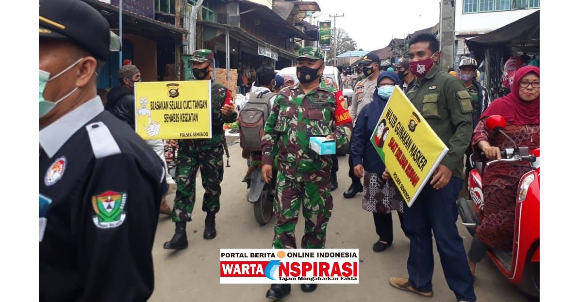 WARTAINSPIRASI.COM, MUARA ENIM — Dalam rangka untuk menekan dan menurunkan angka penyebaran wabah COVID-19 di wilayah binaannya Kecamatan Semende, Kabupaten Muara Enim. Koramil 404-06 Semende dan Polsek Semende Intensifkan tertibkan Protokol kesehatan (Prokes) 3-M kepada masyarakat. Jumat, (5/2/2021).