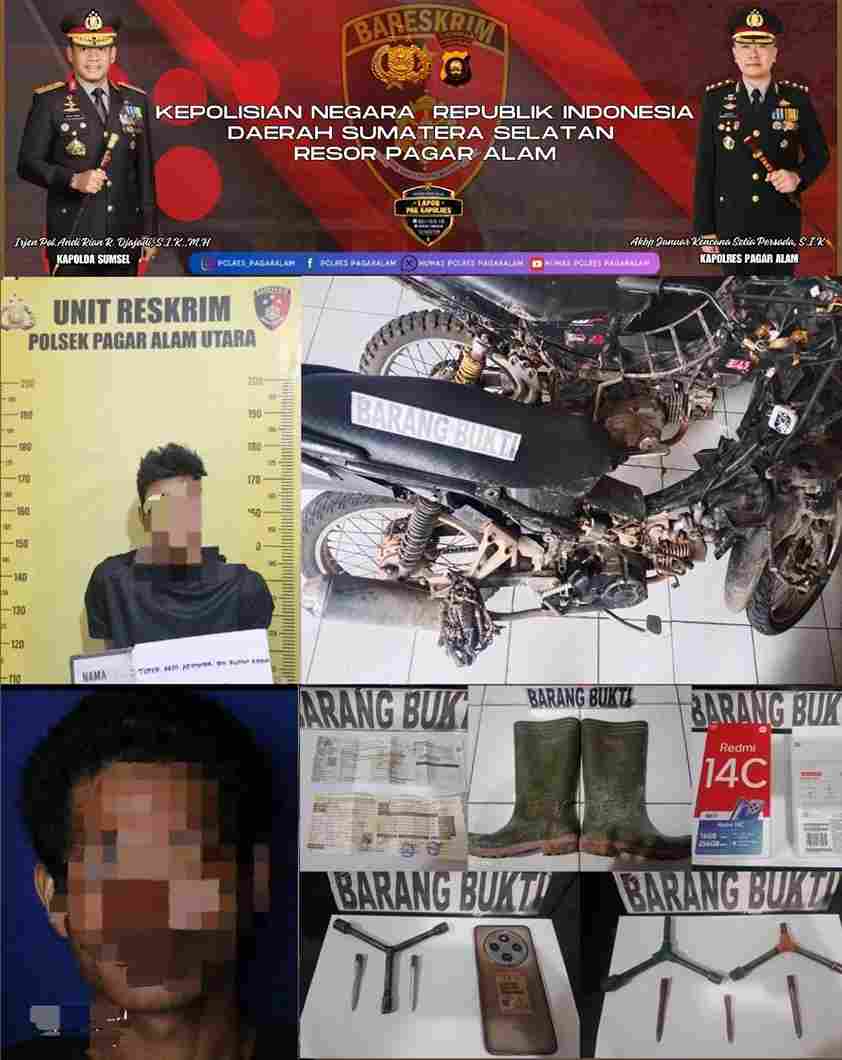 Wartainspirasi.com — Gerak cepat dan kesigapan Polres Pagar Alam melalui Polsek Pagar Alam Utara kembali membuahkan hasil. Dalam waktu singkat, Tim Gabungan berhasil mengungkap kasus tindak pidana Pencurian Sepeda Motor.