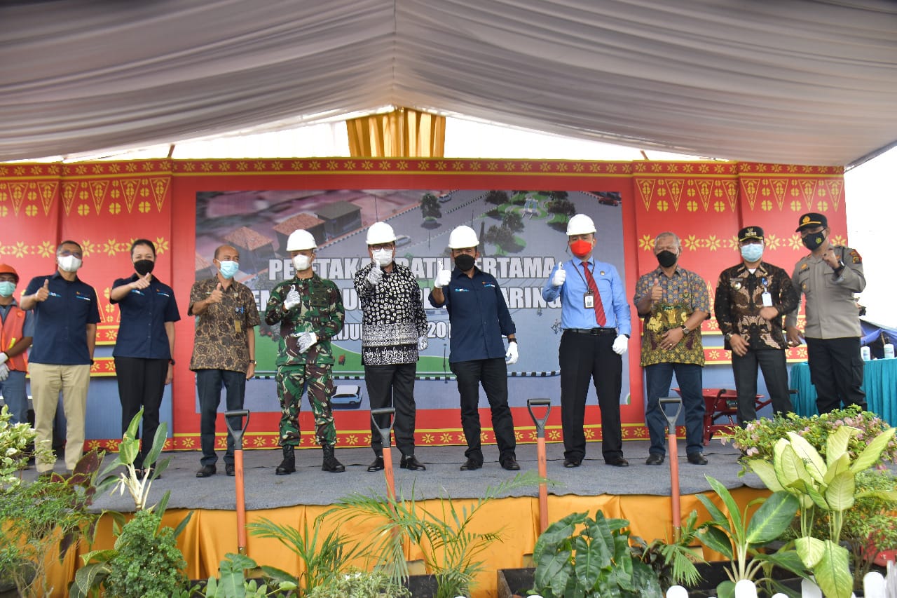 Muara Enim, WARTAINSPIRASI.COM —Dimulainya pembangunan Plaza Saringan ditandai dengan peletakan batu pertama yang dilakukan oleh Direktur Utama PT Bukit Asam Tbk (PTBA) Suryo Eko Hadianto bersama Bupati Muara Enim Nasrun Umar, di Kawasan Eks Pasar Buah Bantingan Tanjung Enim, Kamis sore (20/5/2021).
