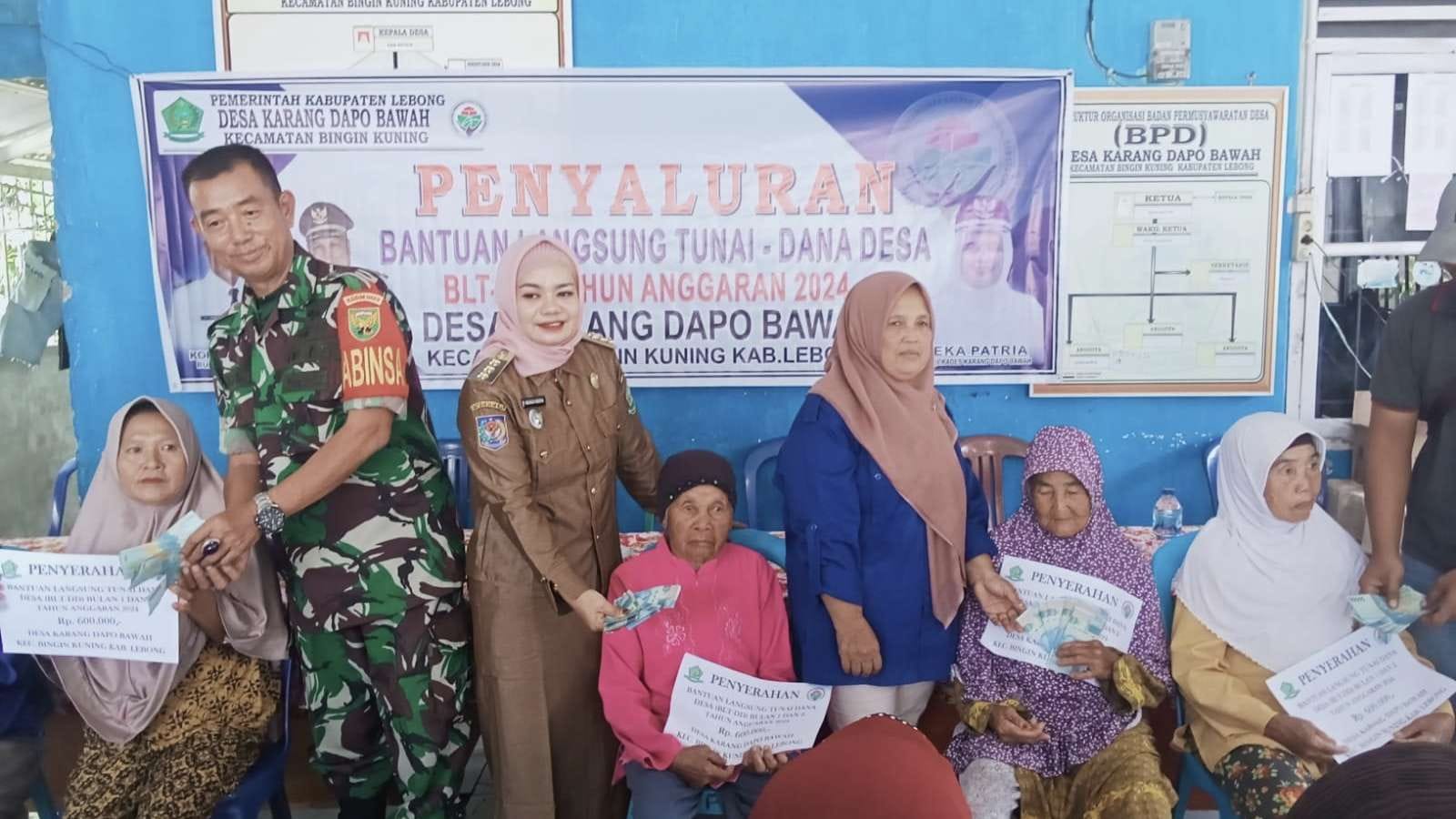 Di salurkan BLT DD sebanyak 38 Keluarga Penerima Manfaat (KPM), tampak hadir dalam kegiatan hari ini, Kepala Kecamatan Bingin Kuning, Meika Riska, Pjs Kades, Eka Patria, Babinsa, Bhabinkamtibmas, BPD, Pendamping Desa, Pendamping Lokal Desa beserta jajaran Perangkat Desa Karang Dapo Bawah Kecamatan Bingin Kuning.