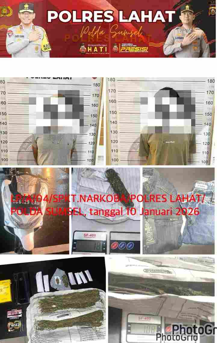 Keduanya diamankan berdasarkan Laporan Polisi: LP/A/04/I/2026/SPKT. Narkoba/Polres Lahat/Polda Sumsel, tanggal 12 Januari 2026, kejadian sekira pukul 00.30 WIB, dengan TKP didalam rumah kost-an yang ditempati K didesa Suka Negara kecamatan Lahat, Kabupaten Lahat.