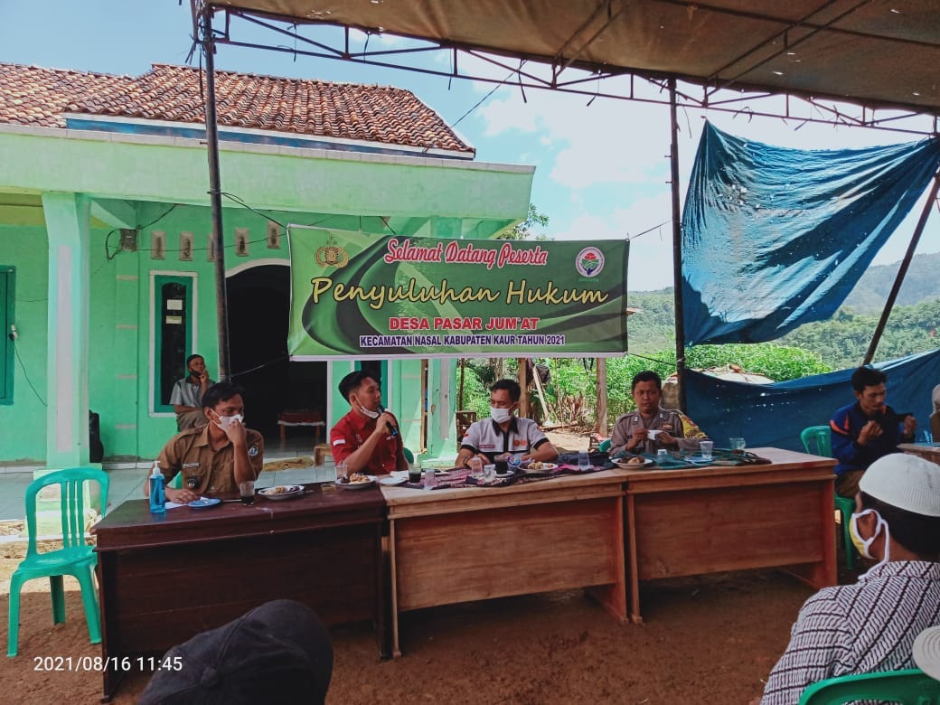 KAUR, WARTAINSPIRASI.COM – Di Desa Pasar Jumat Kecamatan Nasal Kabupaten Kaur, Senin (16/08/21) telah menerima kedatangan dari aparat penegak hukum Polsek Nasal Polres Kaur Polda Bengkulu. Dimana Naradumber yang hadir dari Kanit Reskrim Polsek Nasal Bripka Kasmon Johari, Kanit Intelkam Polsek Nasal Bripka Eko Heriyanto dan Bhabinkamtibmas Bripka Eko Setio Budi.