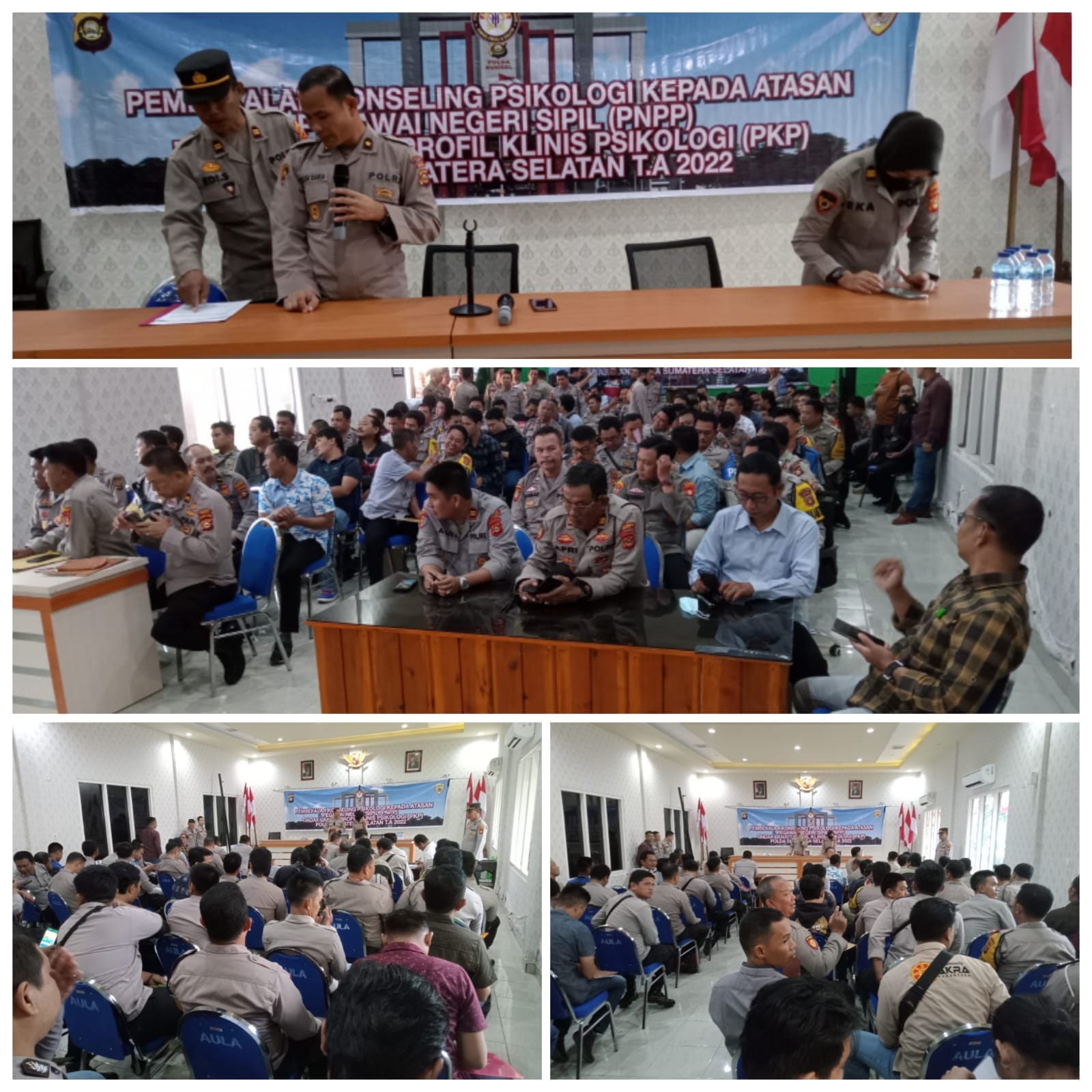 LAHAT — Bertempat di ruang Aula Mapolres Lahat, Kapolres Lahat AKBP Eko Sumaryanto SIK, yang diwakili Kabag Log Kompol Telebanua SH, telah menerima Team psikologi Polda Sumsel yang di pimpin IPTU Rita, dalam kegiatan pemberian pembekalan Konseling Psikologi, dan Tes Psikologi.