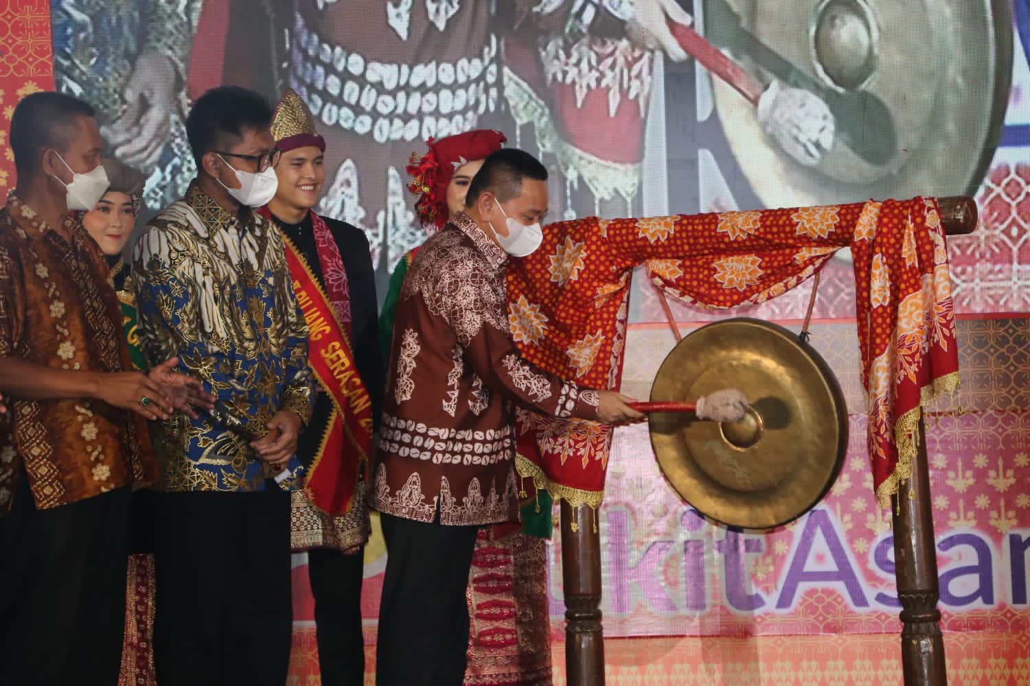 Wartainspirasi.com, Muara Enim | Malam puncak grand final pemilihan Bujang Gadis Serasan (BGS) 2022,yang dihadiri dan dibuka langsung oleh Plh Bupati Muara Enim Kurniawan,AP.SMi yang di laksanakan di gedung kesenian Putri Dayang Rindu Muara Enim, ditandai dengan pemukulan Gong,Rabu Malam (18/05/2022).