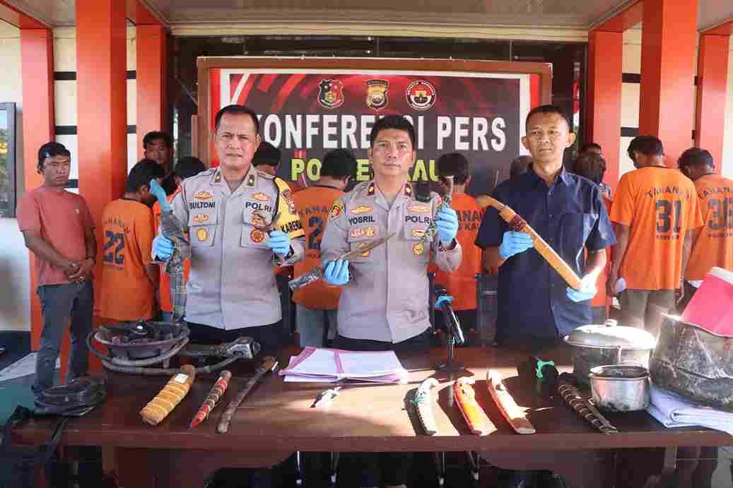 Wakapolres menambahkan bahwa 10 tersangka yang ditahan terbukti membawa senjata tajam (sajam) berupa pisau, keris, tombak, maupun parang.