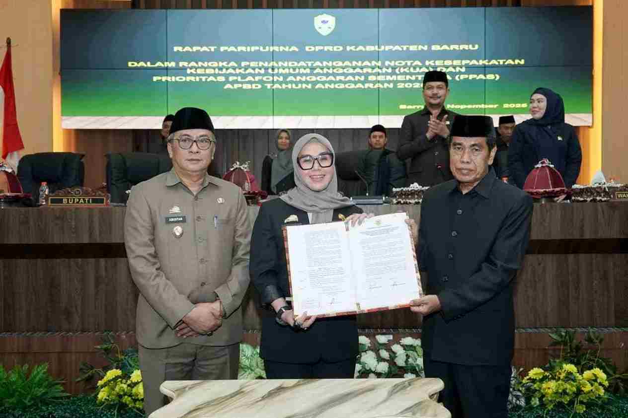 Wartainspirasi.com – Bupati Barru, Andi Ina Kartika Sari, S.H., M.Si, menghadiri Rapat Paripurna Dewan Perwakilan Rakyat Daerah (DPRD) Kabupaten Barru dengan agenda utama Penandatanganan Nota Kesepakatan Kebijakan Umum Anggaran (KUA) dan Prioritas Plafon Anggaran Sementara (PPAS) Tahun Anggaran 2026.