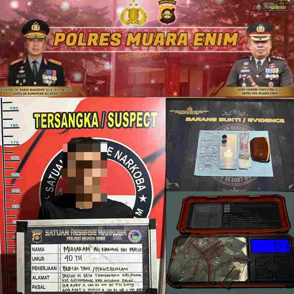 Wartainspirasi.com — Jajaran Polda Sumatera Selatan melalui Polres Muara Enim bergerak cepat merespons laporan masyarakat dan berhasil mengamankan seorang pengedar narkotika jenis sabu di Desa Tambangan Kelekar, Kecamatan Gelumbang, Selasa (7/4/2026) dini hari.