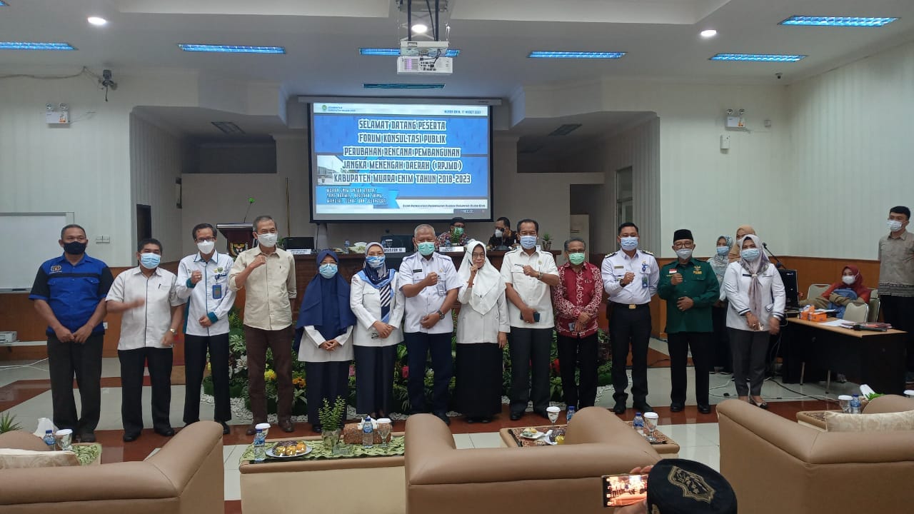 Forum Konsultasi perubahan rencana pembangunan jangka menengah (RPJMD) tahun 2018-2023 menghadirkan Bappeda Propinnsi Sumsel yang diwakili Hj Apri Nuryanti, Profesor Andi Mualyana dari Unsri dan Prof Kiagus M Sobri dari Badan Rsforkomim riset Daerah serta undangan forkomimda Camat dari berbagai unsur masyarakat. (RI).