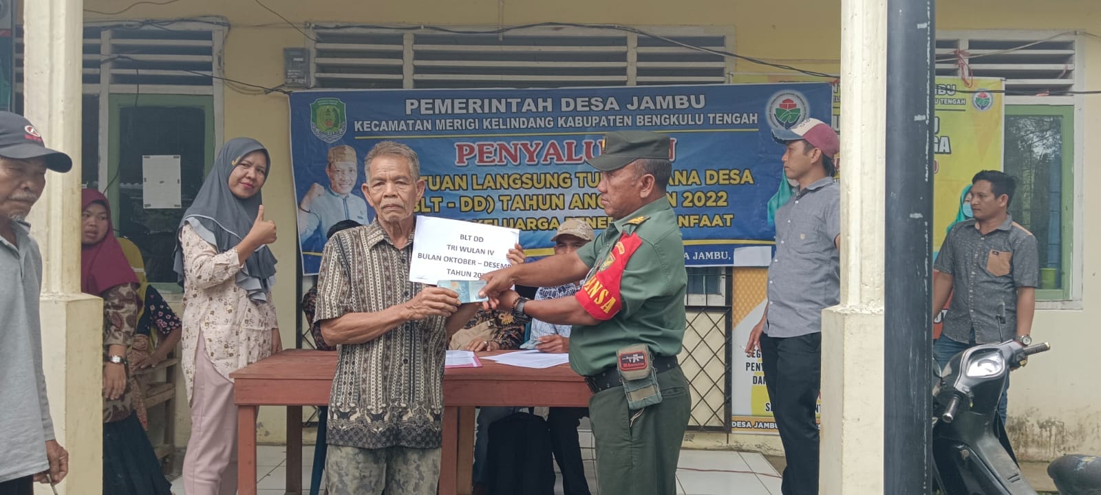 WARTAINSPIRASI.COM — Pemerintah Desa Jambu Kecamatan Merigi Kelindang Kabupaten Bengkulu Tengah kembali menyalurkan Bantuan Langsung Tunai Dana Desa (BLT-DD) pada hari Kamis, (8/12/2022) di Kantor Desa Jambu. Acara ini turut dihadiri oleh pihak Kecamatan Merigi Kelindang, Pendamping Desa, dan Perangkat Desa Jambu, BPD Jambu serta masyarakat penerima KPM.