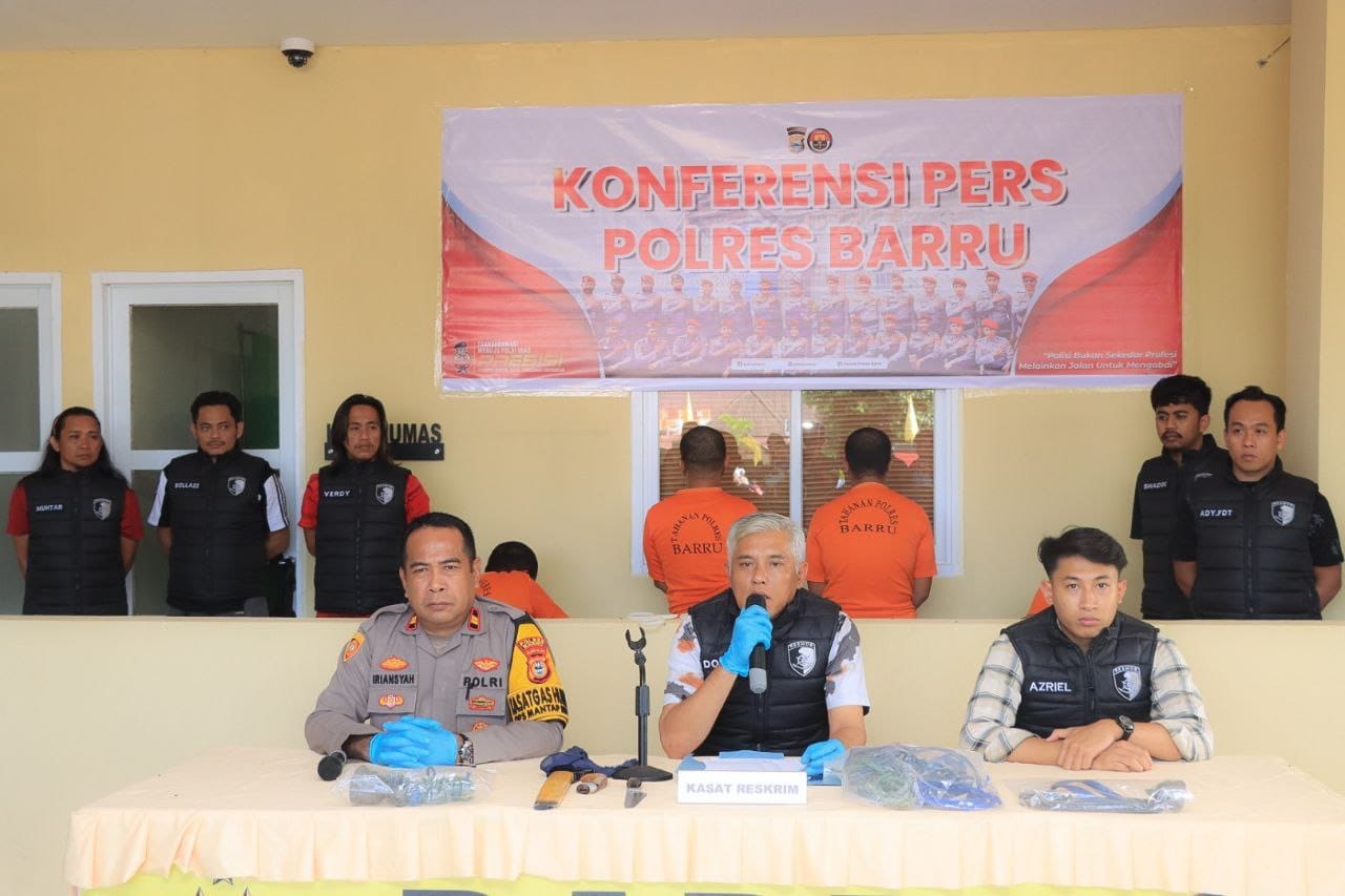 Kasat Reskrim Polres Barru AKP. Doris Hadiana, S. Sos. M.H, didampingi Kasi Humas IPTU Iriansyah S.H, bersama Kanit Resmob dan timnya, Kanit Tipidum dan Kanit Tipidter mengatakan, keempat dari enam pelaku pencuri sapi ini merupakan satu komplotan dan rata-rata berstatus residivis.