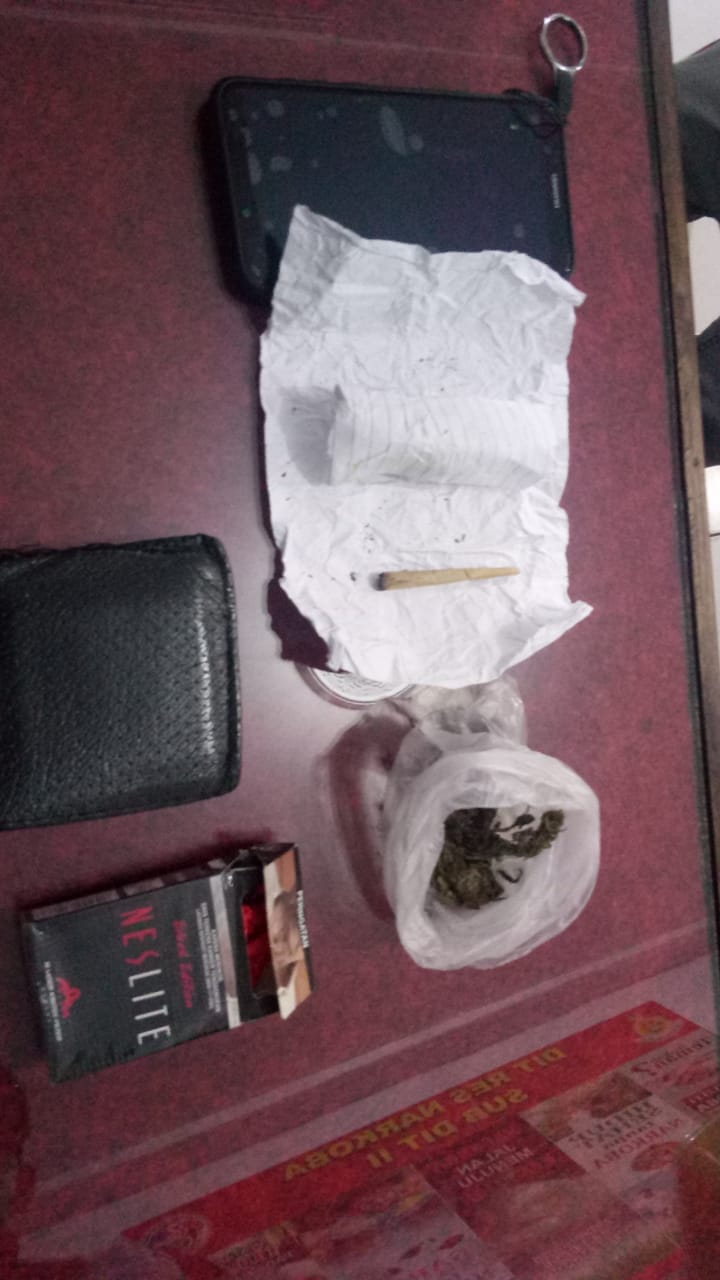 Dijelaskan oleh Kabid Humas Polda Bengkulu, Dalam penangkapan terhadap tersangka tersebut, pihaknya juga berhasil menyita barang bukti berupa BB ganja 1 paket di dalam kantong celana. 1 paket di dalam kantong celana di dapur.. 1 linting ganja di atas asbak d dapur, serta 1 buah kaca pirek.