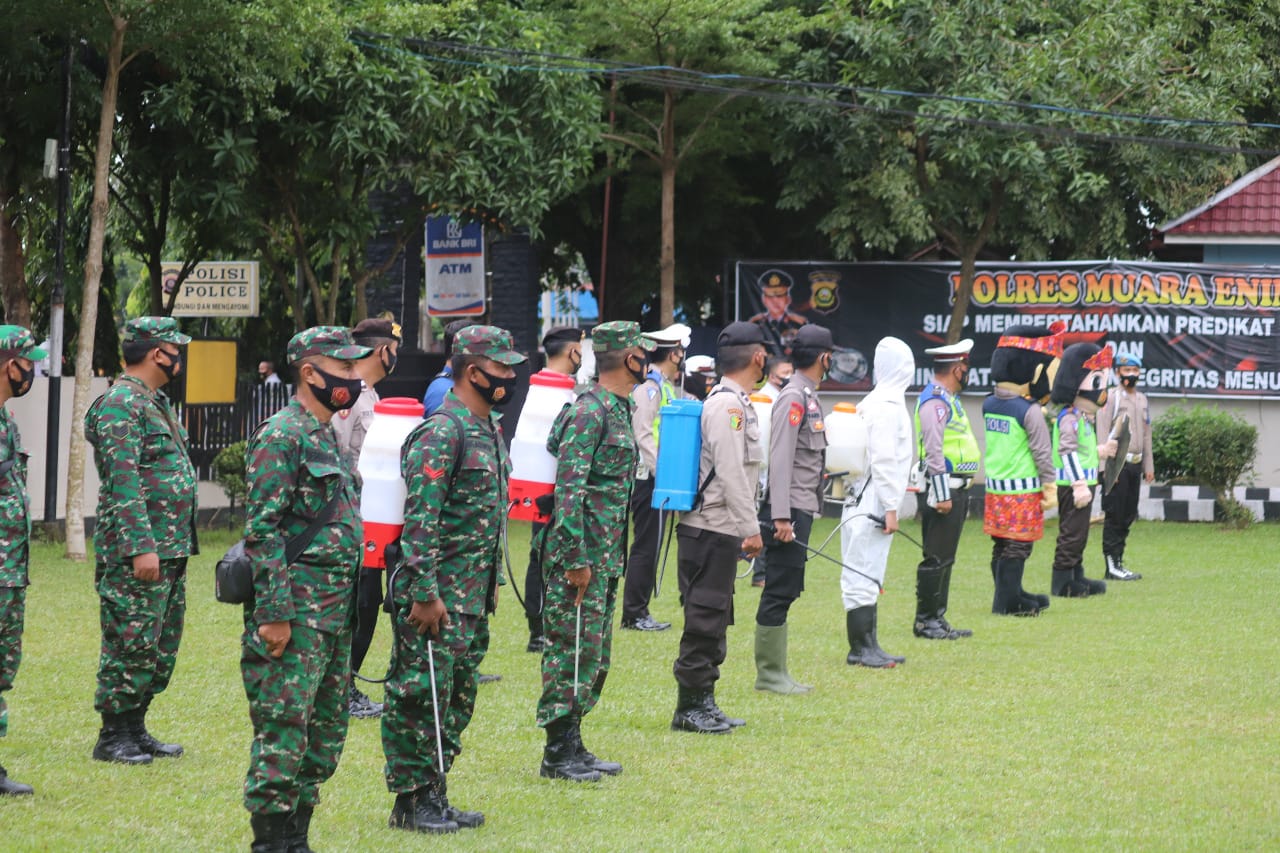 Kapolres Muara Enim AKBP Danny Sianipar S.I.K melalui Kasubag Humas Iptu RTM Situmorang menjelaskan, “Kegiatan ini dilaksanakan di dua tempat secara serentak yaitu di Wilayah Kecamatan Muara Enim dan Wilayah Kecamatan Lawang Kidul Kabupaten Muara Enim dan Kegiatan ini merupakan Sinergitas TNI Polri dalam rangka Percepatan Penanganan Wabah Pandemi Covid 19 di Kabupaten Muara Enim, Sasaran yang di Muara Enim kita melaksanakanya di Pasar Muara Enim dengan melakukan Penyemprotan disinfektan, Pembagian Masker dan Himbauan Untuk mengikuti Vaksinasi Covid”. Jelas Iptu RTM Situmorang.