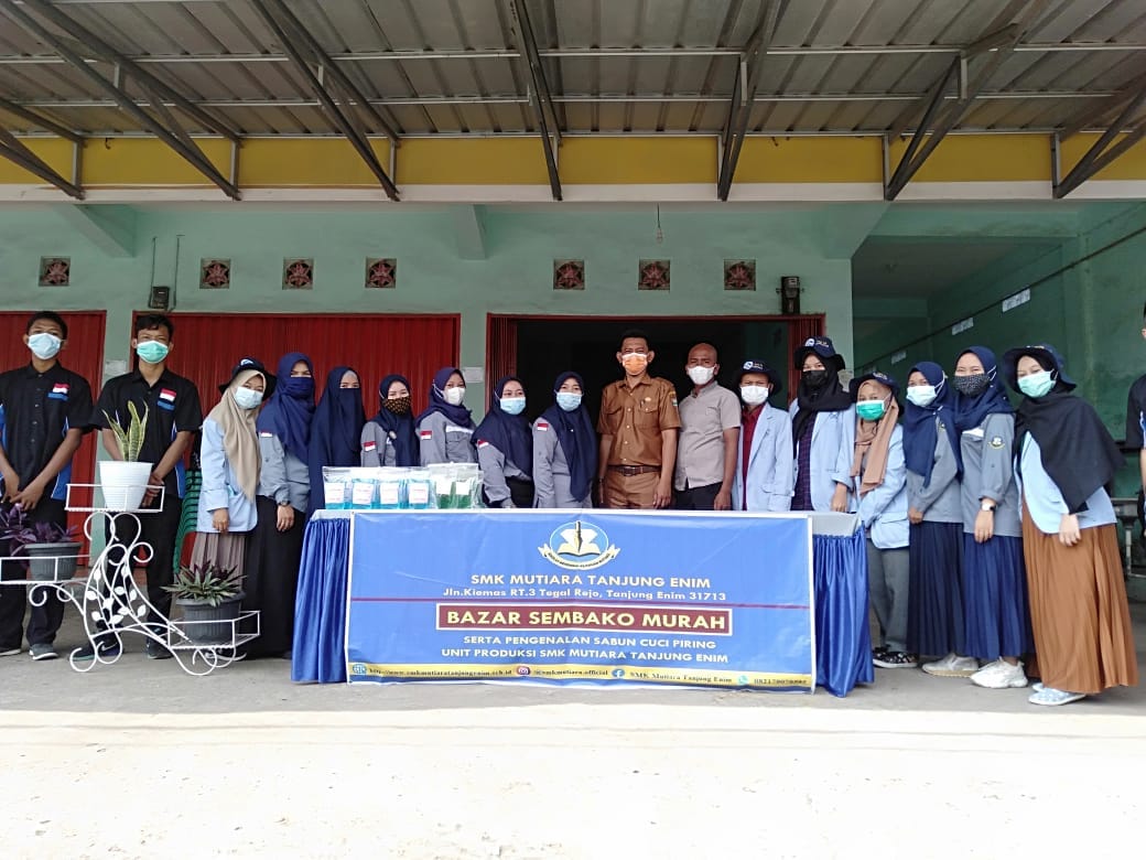 WARTAINSPIRASI.COM, MUARA ENIM — Untuk memperkenal kan hasil produksi siswa siswi nya hasil dari praktikum di masa pandemi covid ini berupa Sabun cair Pencuci Piring dan sabun pencuci pakaian SMK Mutiara Tanjung Enim Kab.Muara Enim mengadakan Bazar Sembako Murah yang di gelar di depan pertokoan rumah Kepala Desa Tegal Rejo Tanjung Enim,Selasa (2/2/2021).
