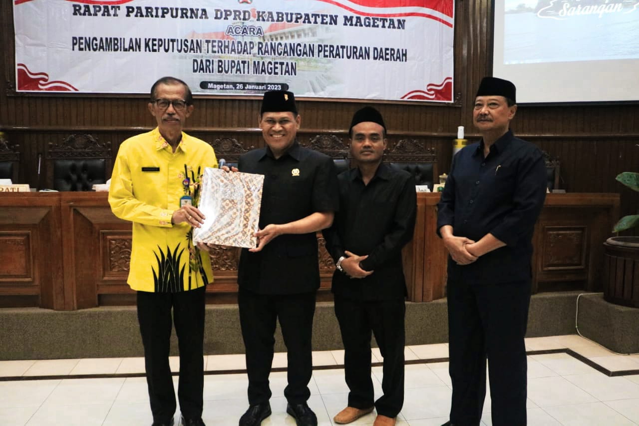 Wartainspirasi.com, Magetan — Bertempat di Ruang Rapat Paripurna DPRD Kabupaten Magetan, Kamis siang (26/01/23), Dewan Perwakilan Rakyat Daerah (DPRD) Kabupaten Magetan menggelar Rapat Paripurna dalam agenda Pengambilan Keputusan Rancangan Peraturan Daerah (RAPERDA) dari Bupati Magetan.