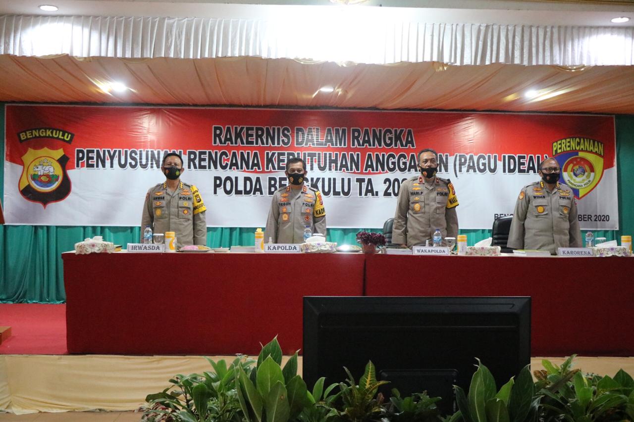 Wartainspirasi.com, Bengkulu– Menerapkan protokol kesehatan ditengah pandemi covid-19 secara ketat, Biro Rena Polda Bengkulu pagi hari ini Rabu (12/11) menggelar kegiatan Rakernis (rapat kerja teknis) penyusunan rencana kebutuhan anggaran (pagu ideal) Polda Bengkulu tahun 2022.
