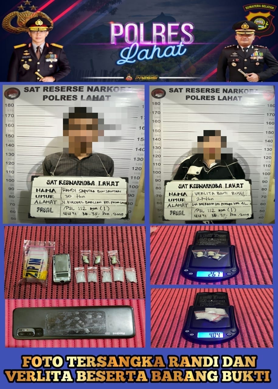 Terbukti, pada Rabu tanggal 21 Desember 2022 sekira pukul 01.30 WIB, Team Walet Sat Resnarkoba Polres Lahat berhasil melakukan penangkapan dengan TKP dusun III No.217 Desa Manggul Kecamatan Lahat, Kabupaten Lahat, atas nama Randi Saputra (30) warga Jl Kol. Burlian RT 019 RW 006 kelurahan Pasar Lama, kecamatan Lahat dan Verlita (27) warga Gunung Merakso kecamatan Pendopo Kabupaten Empat Lawang.