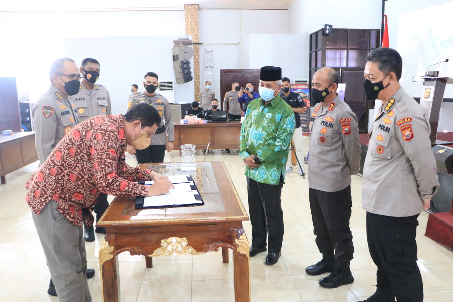 Selain di lakukan di Aula Adem, Penandatanganan PKS tersebut juga di ikuti oleh Polres jajaran Polda Bengkulu melalui Zoom meeting. (Rilis Polda Bengkulu)