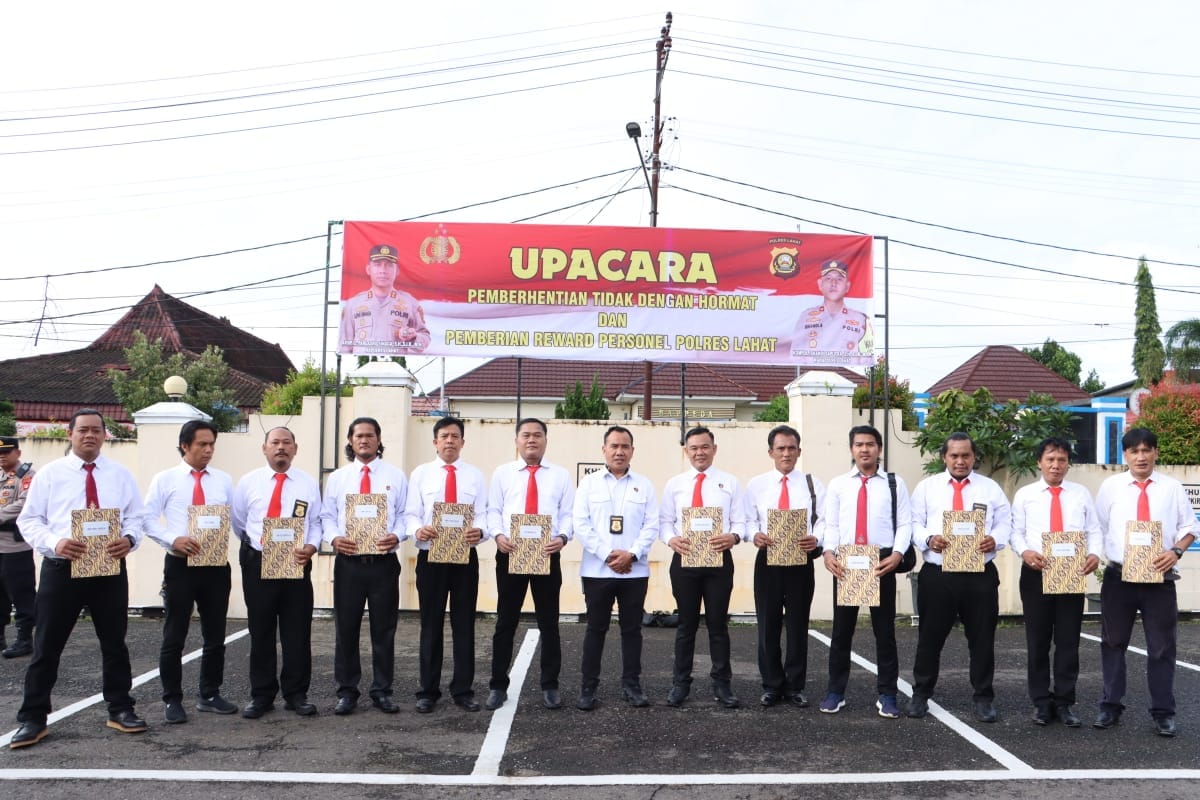 Acara apel pemberian penghargaan kepada belas anggota atas torehan prstasi yang diraih, langsung oleh Kapolres Lahat AKBP God Parlasro S. Sinaga SH, SIK, MH, pada Selasa (05/03/2024).