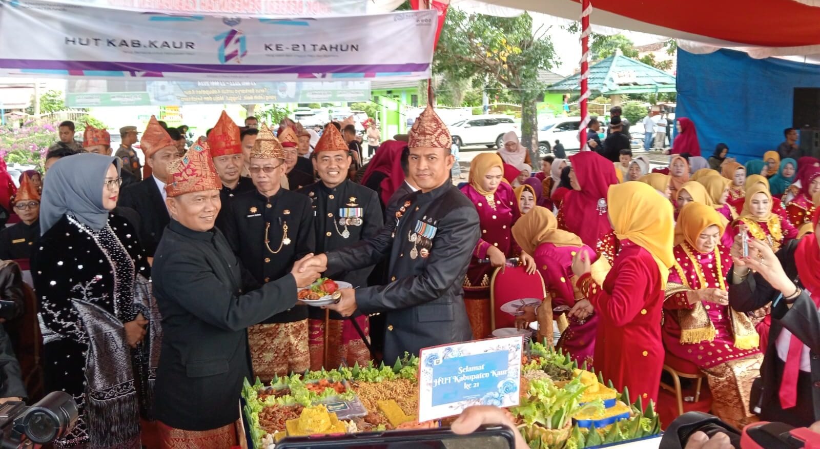Dalam upacara peringatan HUT Kabupaten Kaur Ke-21 selaku Inspektur Upacara dipimpin oleh komandan Komando Distrik Militer 0408/BSK Letkol CIZ, Bambang Santoso SH sedangkan Bupati Dan Wakil Bupati Kaur mendampingi para undangan tamu pejabat dari berbagai Kabupaten tetangga dan pejabat Provinsi Bengkulu.