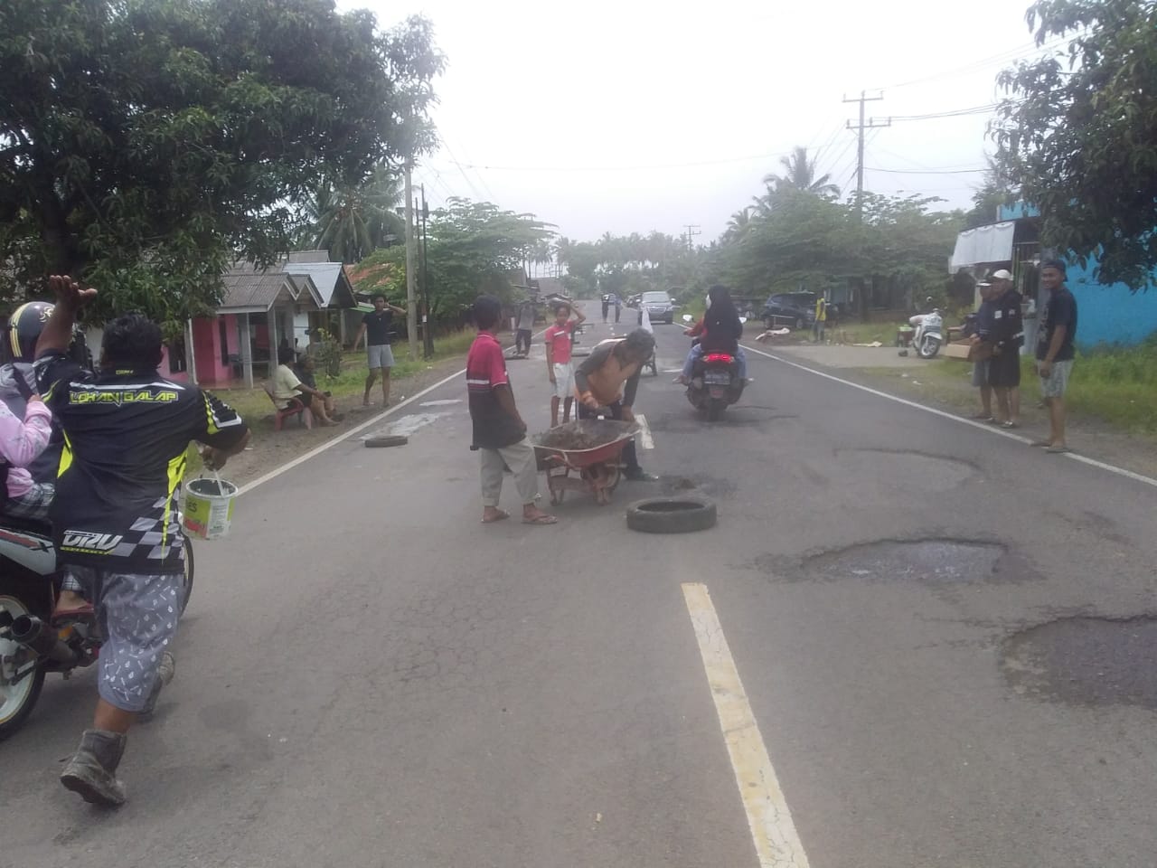 Pantauan media ini diwilayah Dusun Dua Desa Pondok Kelapa tidak kurang dari 15 orang warga setempat dengan peralatan seadanya bahan semen dan pasir menimbun jalan yang berlobang.