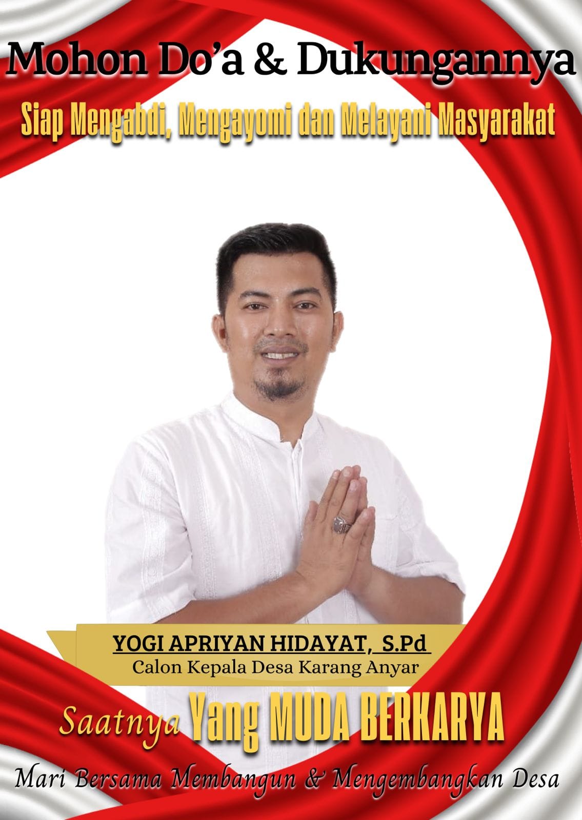 “Intinya, diajang Pilkades Serentak ini, saya merasa terpanggil dan siap melakukan pembenahan termasuk memajukan nama Desa Karang Anyar Kecamatan Lahat Selatan, Kabupaten Lahat. Bagi warga yang belum kenal saya bagi yang ada Facebook (FB) tinggal diklik dan cari nama Yogi Apriyan Hidayat,” ujarnya.